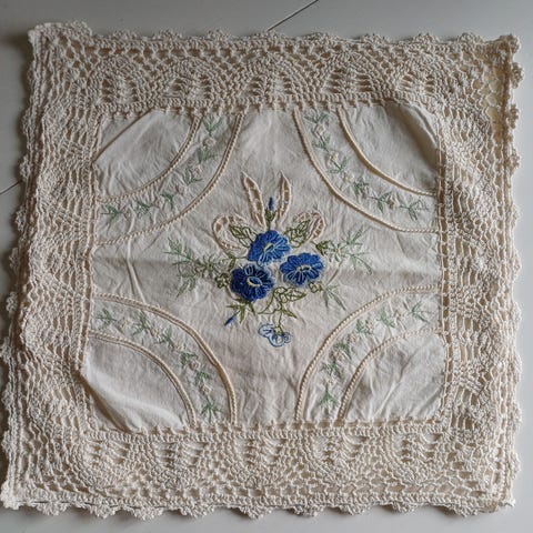 Kaunis siisti ristipistotyö ohuesta villalangasta. Tyynynpäälinen on siisti.