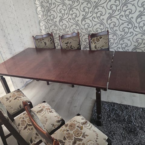 Myydään kaunis, ehjä ja hyväkuntoinen, laadukas tamminen ruokailuryhmä, joka valitettavasti jää itselle ylimääräiseksi.