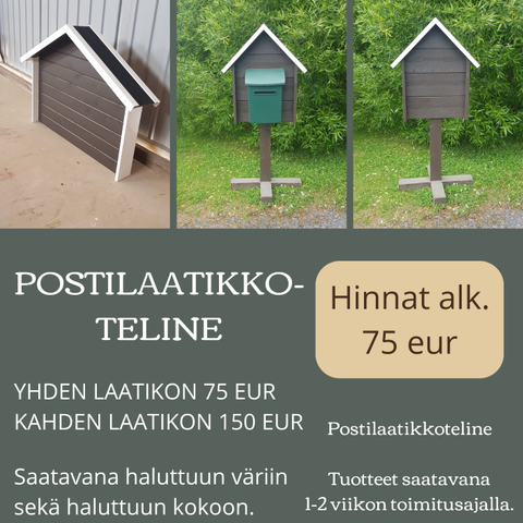 Saatavana Koskella valmistettuja roskakatoksia, postilaatikkotelineitä, ulkohuusseja, leikkimökkejä, ilalämpöpumppusuojia ja varastovajoja nopealla toimituksella. Hinnat itse noutaen Koskelta TL Varsinais-Suomesta.