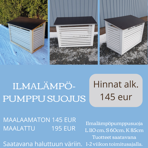 Saatavana Koskella valmistettuja roskakatoksia, postilaatikkotelineitä, ulkohuusseja, leikkimökkejä, ilalämpöpumppusuojia ja varastovajoja nopealla toimituksella. Hinnat itse noutaen Koskelta TL Varsinais-Suomesta.