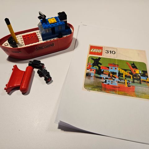 Lego Tug Boat vuodelta 1982. Alkuperäinen ohje mukana, myös laatikosta leikattu kansipala.
