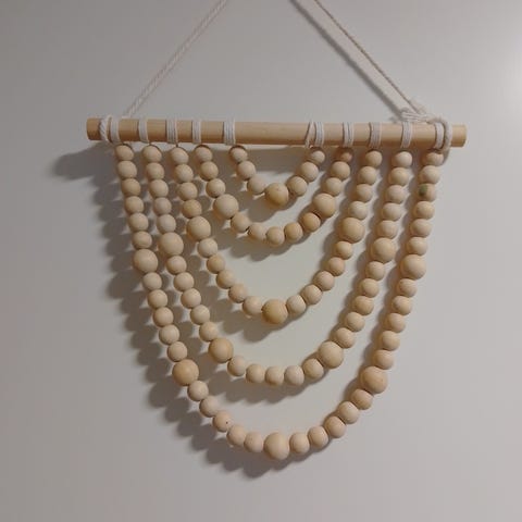 Aarikan isoista puuhelmistä itse punottu helminauha, pituus n. 230 cm. Helmet ovat vaaleaa koivua. Myynnissä kaksi nauhaa. Hinta 20 e/kpl