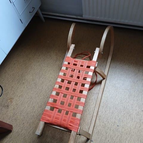 Puinen kelkka mäenlaskuun tai vaikka polttopuukorin kuljettamiseen tai muuhun liukutalloissa peltiluiskat.