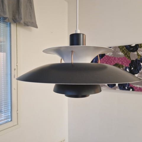 Muuton myötä ylimääräiseksi jäävä huippuhieno valaisin. Toimii todella kauniisti korkeissa tiloissa joissa valaisin näkyy sekä alhaalta ja ylhäältä päin.