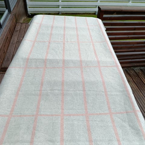 Ostetaan kuvassa näkyvää Marimekon Tiiliskivi -kangasta. Pellavapuuvilla keltaisilla raidoilla. Noin 2,5 metriä. Reunat ommeltu tai ompelematon käy kumpikin.