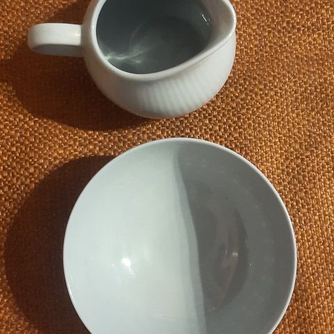 Arabian Soma astioita. Isompi tarjoilulautanen , 6 kpl jälkiruokalautasia, sokerikko ja kermakko. Kermakossa särö siitä kuva.