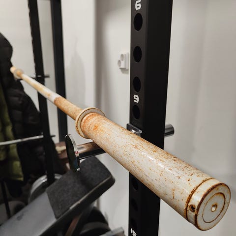 Painava (n 25kg) painonnostotanko turvalukoilla. Pituus 220cm ja 50mm painot menevät tähän. Voimatanko. Kuntosali. Vain nouto Laaksolahdesta.