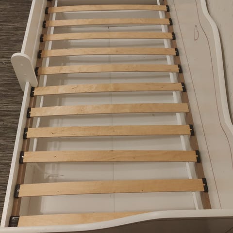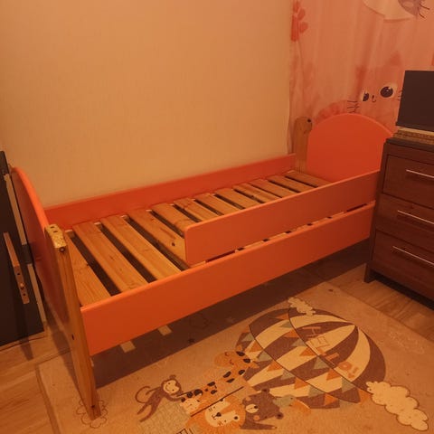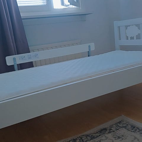 Kapeampi lasten sänky alalaatikolla. Sis.reunakaide.