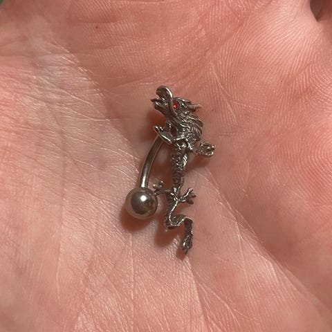 Rasia jonka päällä lohikäärme. Lohikäärmeen toinen sarvi on valitettavasti irronnut ja kadonnut, muutoin kunto hyvä.