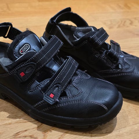 Jalaksen mustat turvasandaalit, koko 38. Kunto käytetty, mutta hyvä. Ajaa asiansa. Tarjoa!