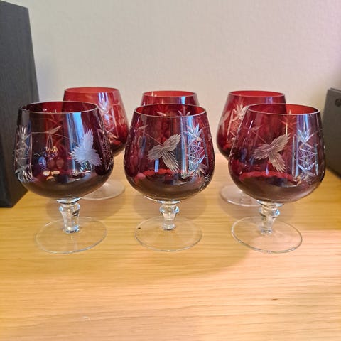 Kauniit vanhat kristalli konjakkilasit. Yhteensä 4 kpl. Myydään yhteishintaan 15 euroa. Postitus onnistuu.