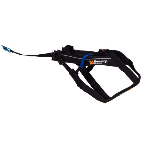 "Säädettävä koiran valjas, jossa on kahva ja kolme kiinnityspistettä. Nämä valjaat ovat erityisen hyvät pennulle tai vahvarakenteiselle koiralle. Non-stop dogwear Ramble valjas on kevyt ja mukava koiralle ja siinä on kestävät soljet. Kiinnitykset molemmilta puolilta sivuista tekevät valjaista helpot laittaa päälle ja ottaa pois.