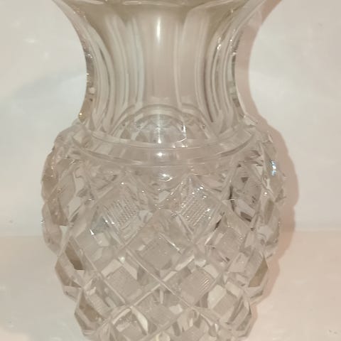 Kaunis vanha kristallimaljakko. Korkeus 20 cm ja suuaukon halkaisija 12,5 cm. Postitus onnistuu.