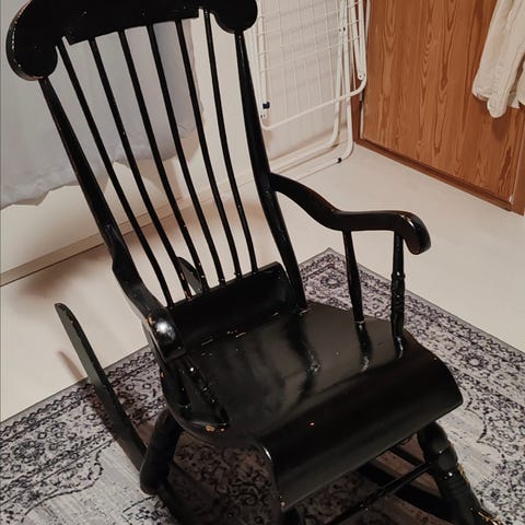 1700-luvun valkoinen keinutuoli. Tarkempaa ajoitusta ei ole tiedossa. Tuoli on ehjä.
