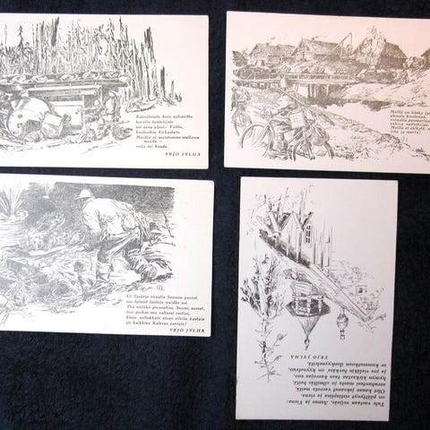 11 kpl vanhoja kenttäpostikortteja. Eri kuntoisia, erilaisia leimoja, yksi ilman kenttäposti merkintää.