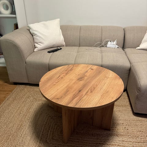 Myydään käytetty, mutta edelleen tukeva ja toimiva puinen sohvapöytä. Pöydässä on normaalia kulumaa ja muutama pieni jälki, jotka ovat syntyneet kynsilakanpoistoaineesta ,eivät kuitenkaan haittaa käyttöä.