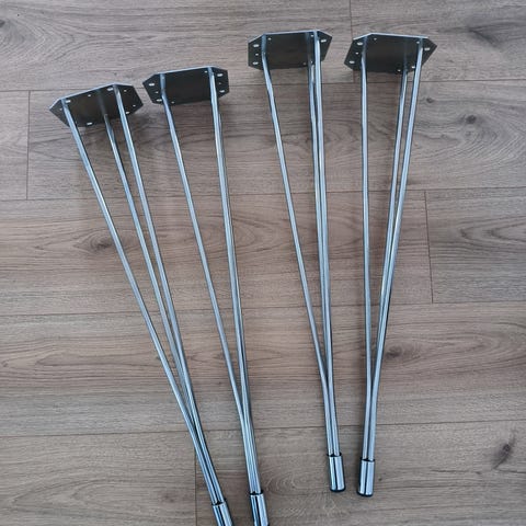Valkoisia pöydänjalkoja 6 kpl. Korkeus 700mm + säätö. Halkaisija 30mm. Laippa 60x60mm neljällä ruuvinreiällä.