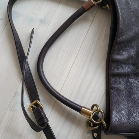 Aitoa nahkaa oleva Marc Jacobsin laukku. En löytänyt mitään käytönjälkeä eli ollut todella vähäisellä käytöllä. Kaunis tummanharmaa/mattakulta väri.