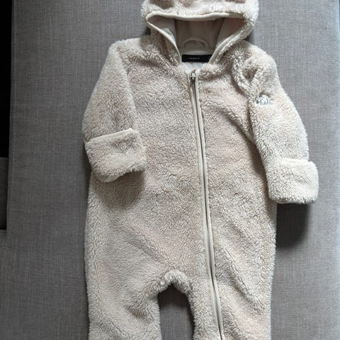 Name it valkoinen unisex vauvan haalari. Koko 62/68 cm. Pehmeä ja lämmin vuorellinen materiaali.