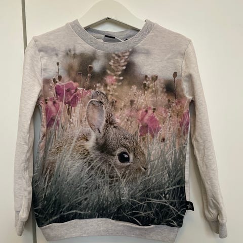 Molo pitkä collegepaita 110 cm, kauluksessa ns. rikottu reuna, harmaa, musta tähti. Uudenveroinen.