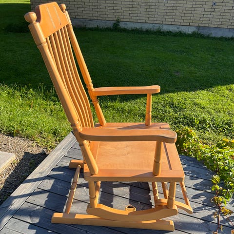 Tyylikäs ja tukeva vaijeritoiminen keinutuoli. Kunto erittäin hyvä, ollut pääasiassa koristeena.