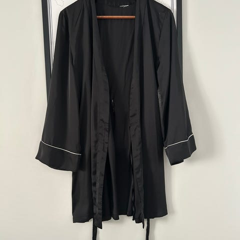 Global merkkinen aamutakki. Harmaa. Koko XS. Sivuilla taskut. Vyö kiinteä kiinnitetty taakse. Takin sisäpuolella vyötäröllä nauhat sitomista varten. Kaunis pitsireunus edessä kummallakin puolella. Ihanan ohut ja pehmeä materiaali.