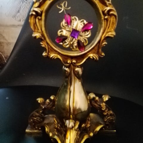 Kuvan mukainen Rokokoo koriste Japanista. Korkeus 11,5 cm ja leveys 12 cm.