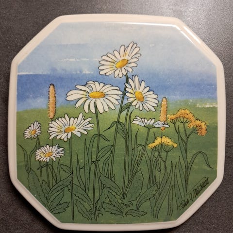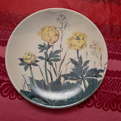 Arabia seinälautanen, Päivänkakkara. Keski-Suomen maakuntakukka. Design, Toivo G. Utriainen.