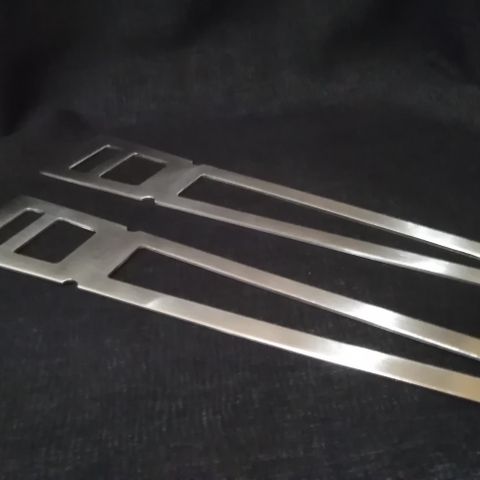 Gensen valmistamat ja Matthias Mikaelssonin suunnittelemat teräksiset salaattiottimet alkuperäislaatikossaan. Käyttämättömät. Pituus 28,8 cm.