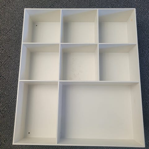 Palaset lokerohylly valkoinen, iso käytönjälkiä on
