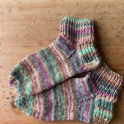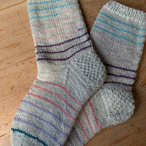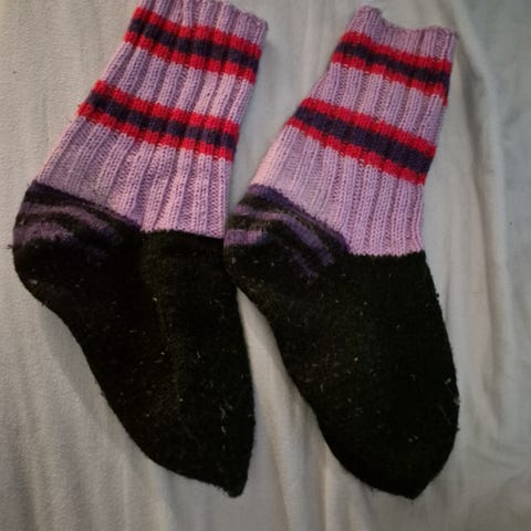 Japanista tuliaisiksi saadut villasukat ja rannelämmittimet. Mitat sukissa 22,5-24,5