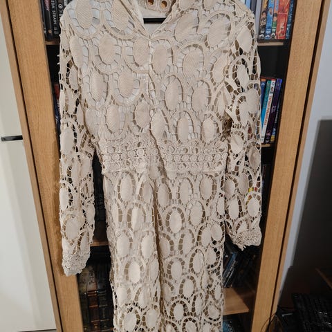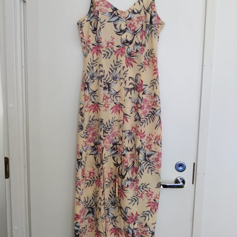 Nudebeige H&M rypytetty sileää joustavaa kaksinkertaista trikoota kauttaaltaan. Menee koolle S tai M, kokomerkintä 38. Kukkamekko joustaa myös (puuvillaa ja elastaania, Mustat kukat vaalea beige tai luonnonvalkoinen pohja