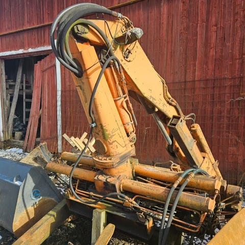 Hiab kahdella sylinterillä ja kylmällä jatkolla, kääntö sylinteri puuttuu. Kyytiin nosto onnistuu.
