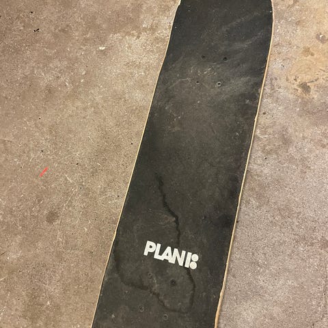 Skeittiramppi, kaksiosainen, ylätaso 125 x 125 sm, liukuosa 125 x n. 220 sm ja yläosan korkeus maasta 125 sm. Osien liitoskohdassa galvanoitu rautaputki. Ylätaso ja liukumäki 13 mm filmivaneri.