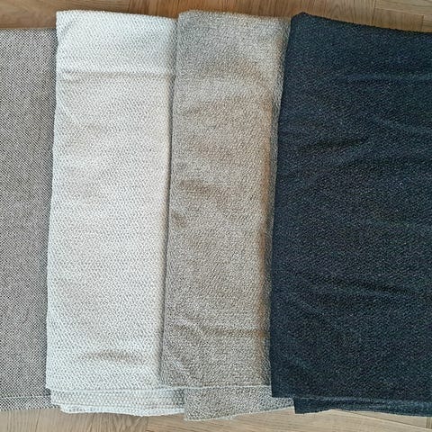 Tummanharmaa verhoilukangas ( 145 x 200 cm + 47 x 160 cm ja 32 x 205 cm ) Kankaasta ollut päällystettynä sohva. Joten on sisustuskangas. Kangas on pehmeä, miellyttävää ja hyvin laskeutuvaa materiaalia, kuitenkin kestävä. Materiaali varmaan puuvillasekoitteinen, jotta kestää kulutusta. Kastelemattomat palat.