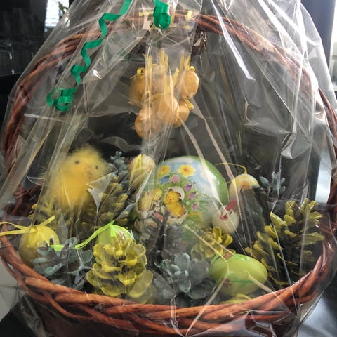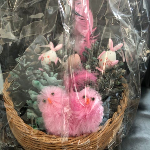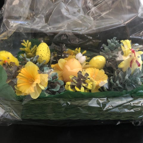 Pääsiäiskoristeita tipuja korissa jne yht 5€