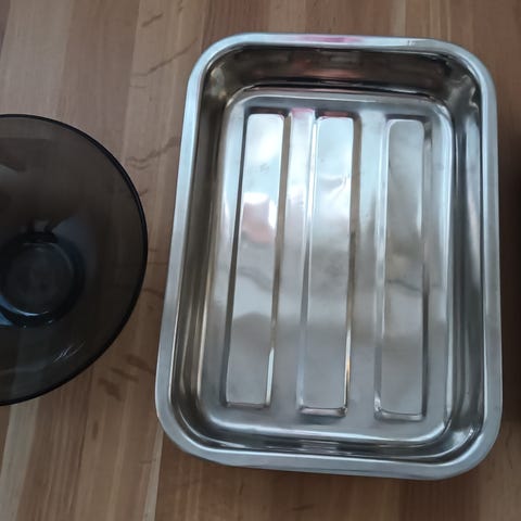 Muutaman kerran käytetty, siisti ja täysin uudenveroinen ILOLEIPURI-teräskulho ja kansi. Materiaali ruostumatonta terästä. Vetoisuus 3 l, sisäpinnassa mittataulukko. Pohjassa nihkeä pinta, joka pitää kulhon paikallaan työskentelyn aikana. Oulu, Kaakkuri. Käteismaksu ja nouto.