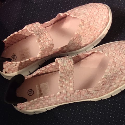 Muutaman kerran käytetyt kauniit H&M ruusukullan väriset sandaalit, koko 38. Sivuilla tarrakiinnitys.