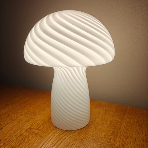 Lasinen pöytävalaisin valkoisella varjostimella. Kunto hyvä