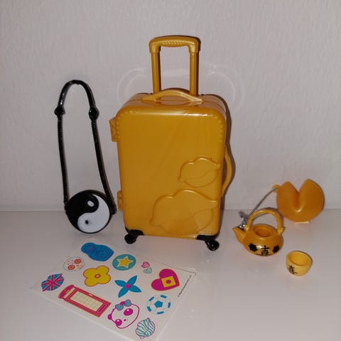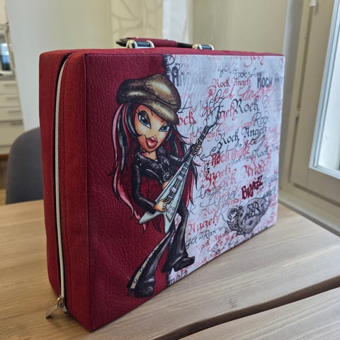 Kuvan mukainen vintage laukku jossa säilytetty bratz nuket ja tavarat. Paljon tilaa. Mitat: leveys35 vm korkeus 27cm. Syvyys 10cm. Nouto/postitus