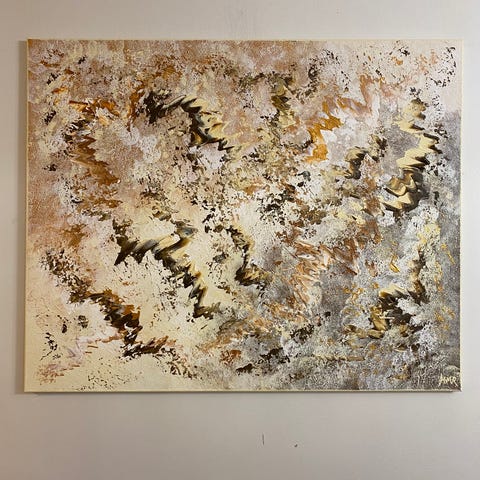Koko 80 x 100 x 2cm. Maalattu kanvakselle akryyliväreillä. Signeerattu ja ripustusvalmis. Laadukas teos, käytetty korkealaatuisia materiaaleja. Teoksessa on vahvasti tekstuuria ja paljon yksityiskohtia. Kultaiset yksityiskohdat loistavat tietystä kulmasta katsottuna. Teen myös tilaustöitä, hinnat on yleensä +20e lisää verrattuna täällä listattuihin hintoihin. Hinnat menee koon mukaan. Lisää erilaisia teoksiani myytävänä täällä ja esillä myös instagramissa tilillä heidiabstractart. Myös postitus onnistuu. VARATTU