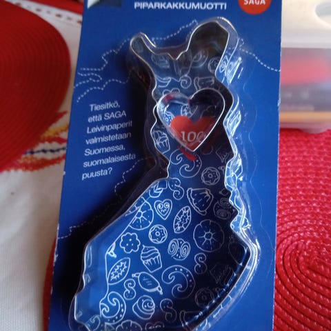Myydään kuvassa näkyvä Suomi+sydän piparkakku muotti. Hinta:13€
