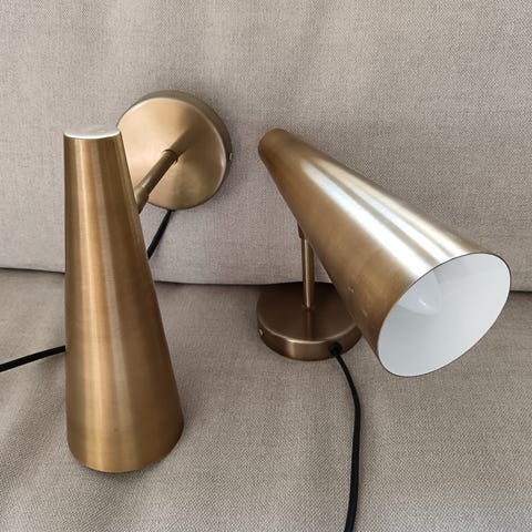2 kpl messinkisiä seinävalaisimia. 20€kpl.