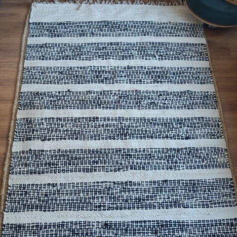 Mustavalkoinen matto 114 x 160cm, näitä kaksi. 15€/kpl.