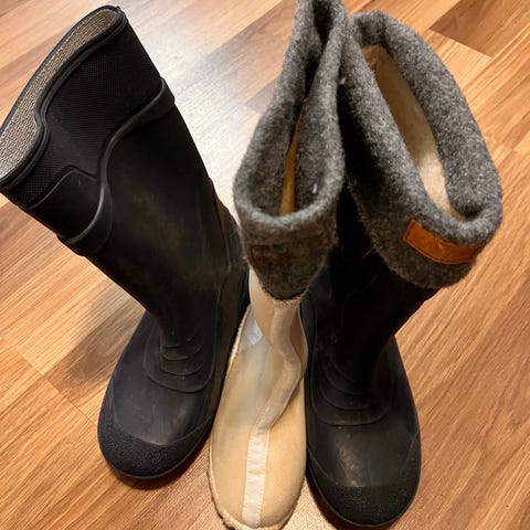 Vuorelliset kumisaappaat. Koko 35. Joustava kumi, joten helppo ja mukava kävellä.
