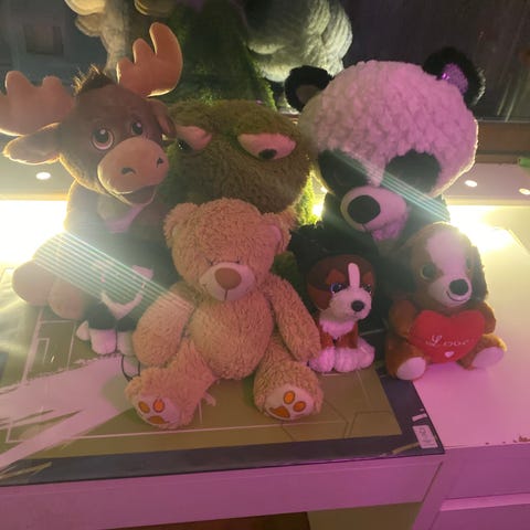 Kuvan pehmolelut ja käärme. Käärme isompi, muut pienempiä. Ehjiä, käytöstä suoraan. Ei säilytetty pihalla.