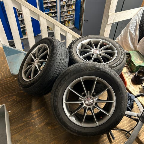 Goodyear 225/55R17. 5-6 mm. Vanteet virheettömät, kuvat jokaisesta vanteesta.