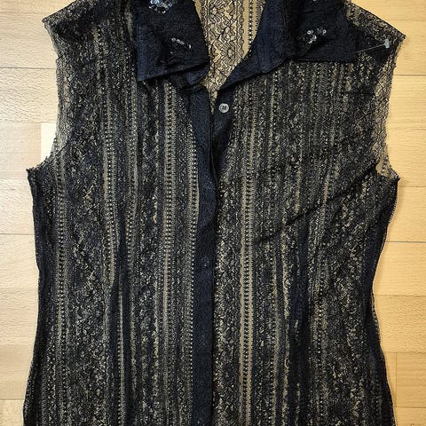 Kaunis sinivaalea paita pitsikoristein.