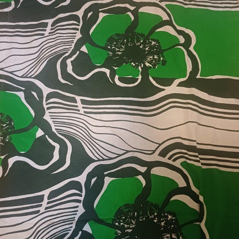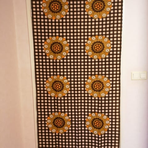 Vihreäsävyiset upeat retroverhot 4 kpl. Koko 160 x 145 cm + 5 cm:n käänne alhaalla. Kuosin nimestä tai suunnittelijasta ei tietoa. Tukeva kangas, uudenveroinen kunto. Luultavasti eivät käytössä ole olleet ompelun jälkeen. Myydään yhteishintaan.