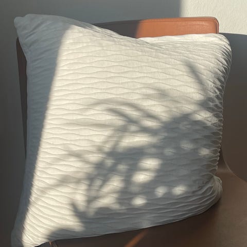 Luonnonvalkoinen tyynyliina paksua kohokuvioitua samettia.